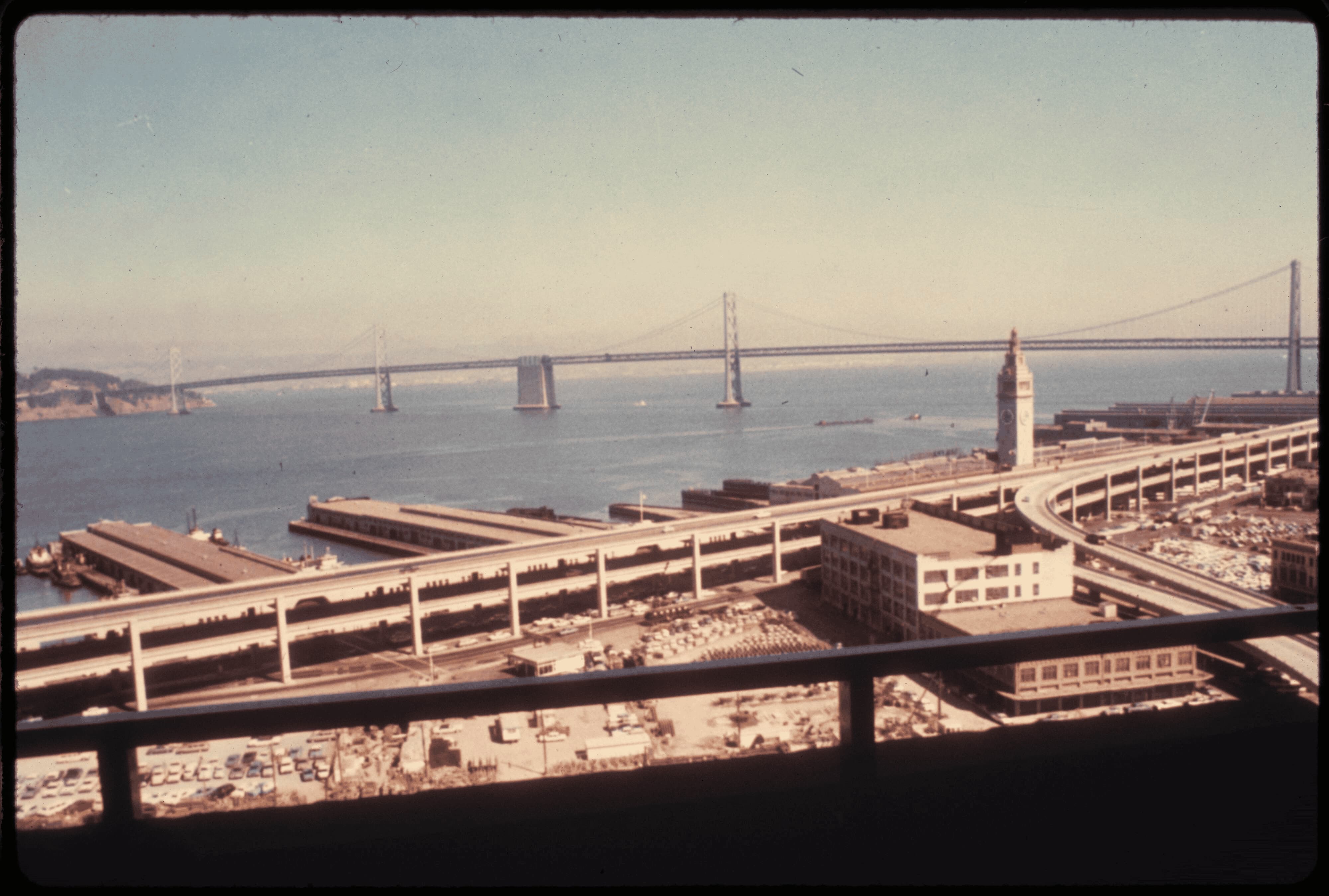 The freeway fully opens, an imposing structure separating the waterfront from downtown.