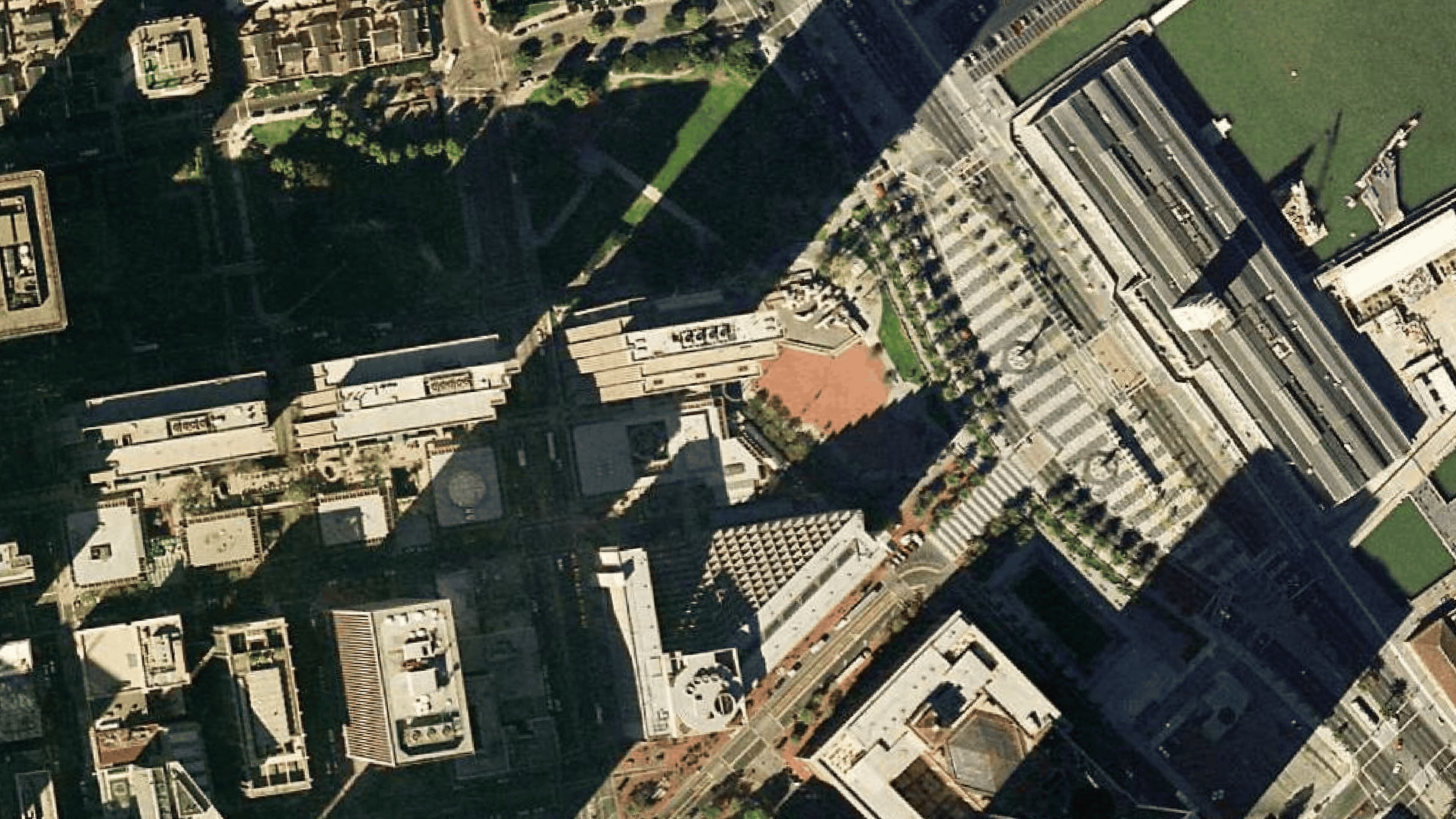 It features the European piazza-inspired bricks, angled grass seating, dynamic geometry, and the iconic Vaillancourt Fountain. The plaza was designed by Lawrence Halprin & Associates in a joint venture with Mario Ciampi & Associates and John Bolles & Associates.