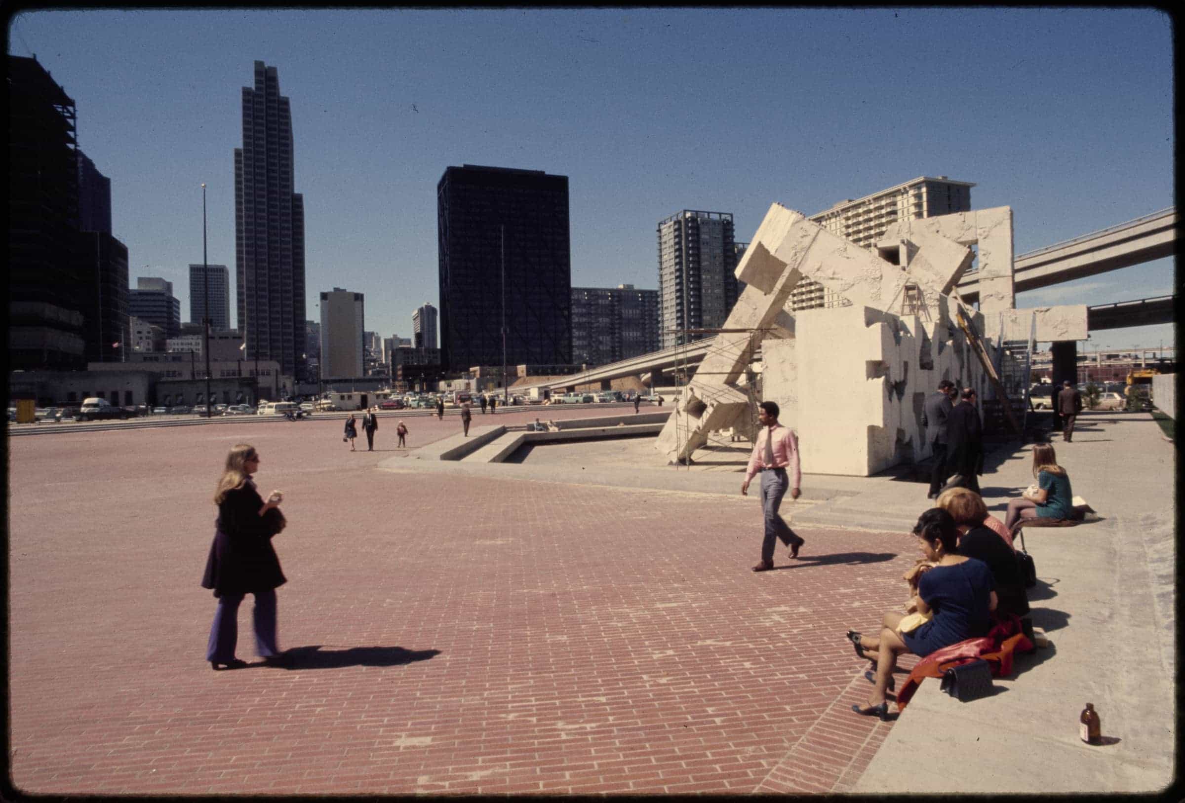 A design competition for the fountain at Embarcadero Plaza kicks off. Five international sculptors submit designs: Armand Vaillancourt, James Melchert, Reuben Nakian, Jacques Overhoff, and Alicia Penalba. The competition’s jury is composed of Lawrence Halprin, John Savage Bolles, and Mario Ciampi.